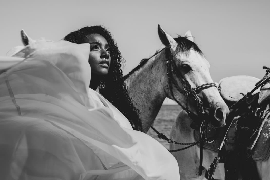 We tend to do a lot of sessions for couples, weddings and families but, when we get to do something like this, we feel so creative and we come up with very unique ideas. We were also lucky that when we were taking pictures at the beach, some horses went by. We talked to the owner and he let us use the horses in our pictures. The results were marvelous and so was the experience!